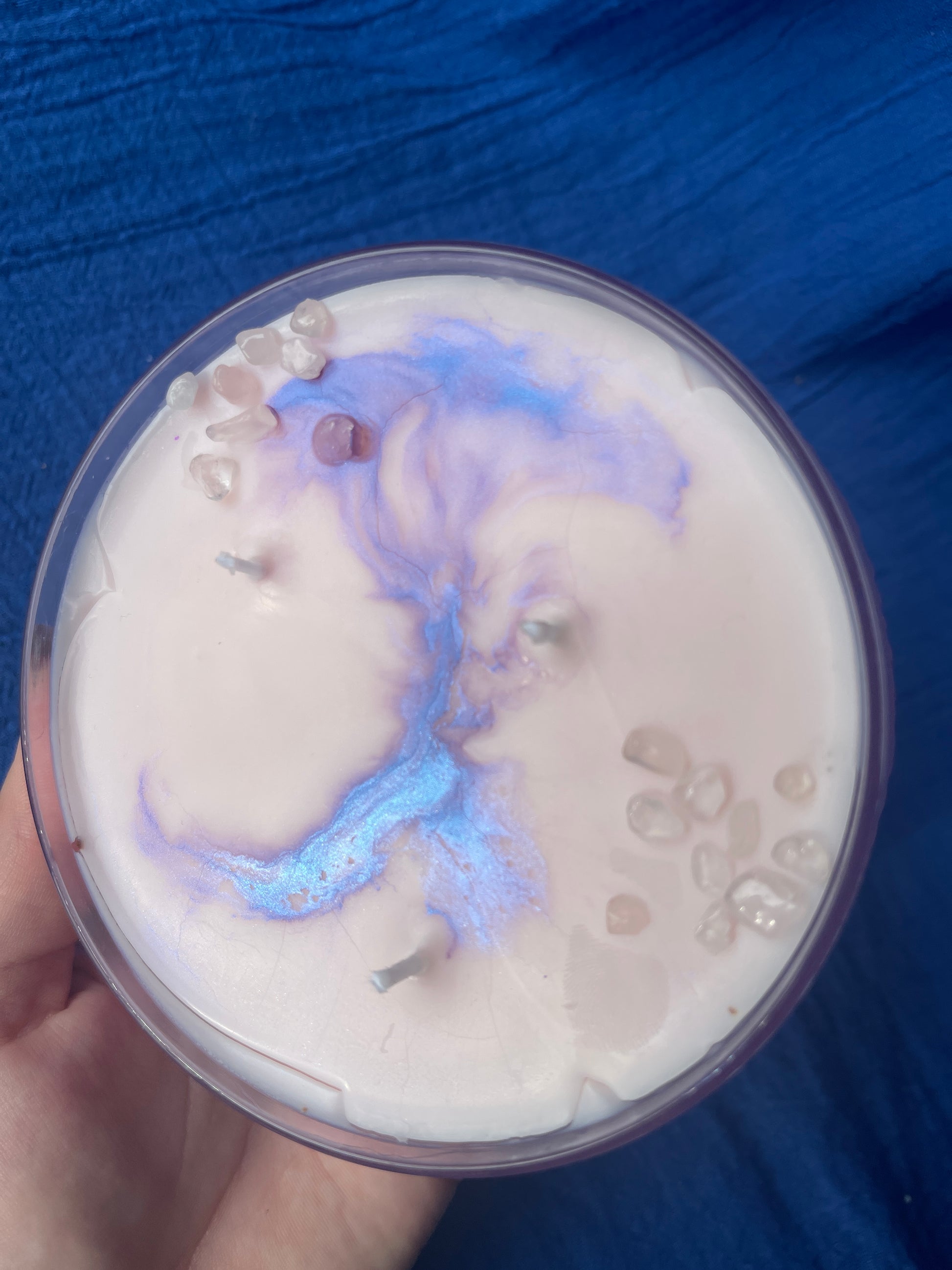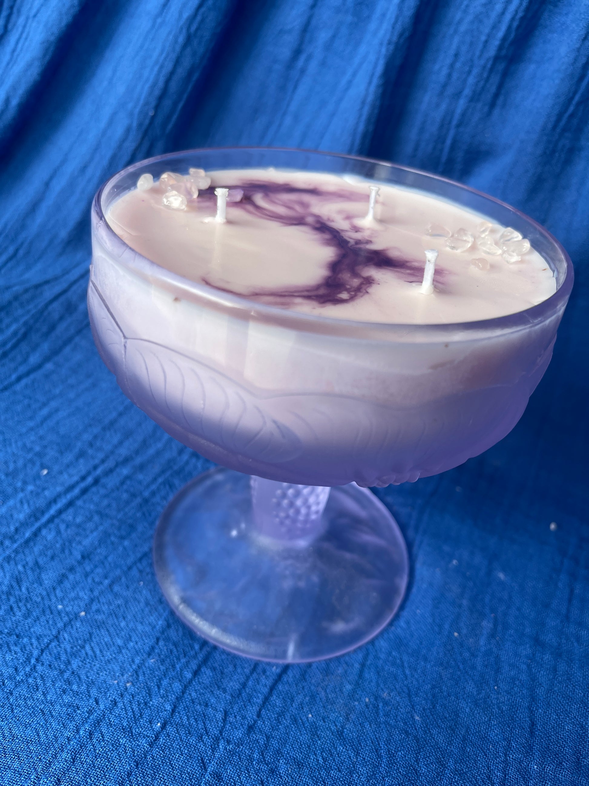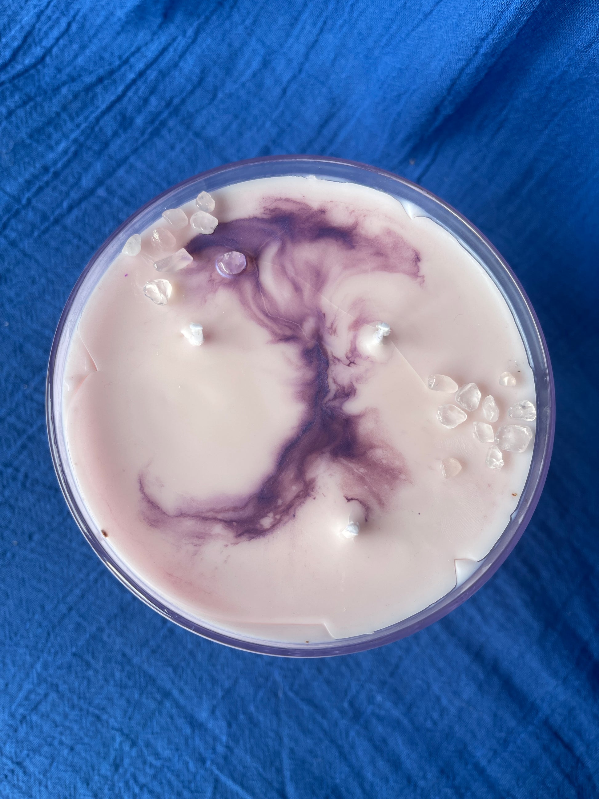 Présentée dans une coupe lilas délicate, cette bougie est coulée à la main dans une cire rose, symbole d’amour, de douceur et d’émotions sincères. Elle est décorée de quartz rose, pierre associée à l’amour sous toutes ses formes, à la bienveillance et à l’apaisement émotionnel.